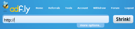 Adf.ly are a free URL shortening service. Get paid to share your links on the Internet ! Just register for an account and start shrinking. You get paid for every person that visits your URLs. Isn't that sounds good? Register now!